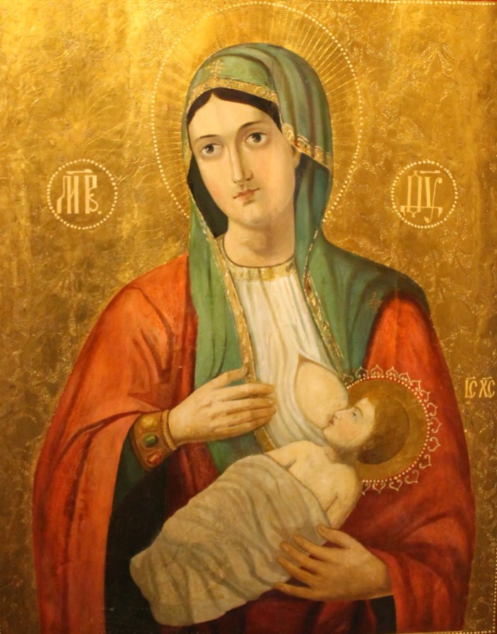 Santísima Virgen alimentando al bebé Cristo con su pecho, por Yuri Rudnitsky