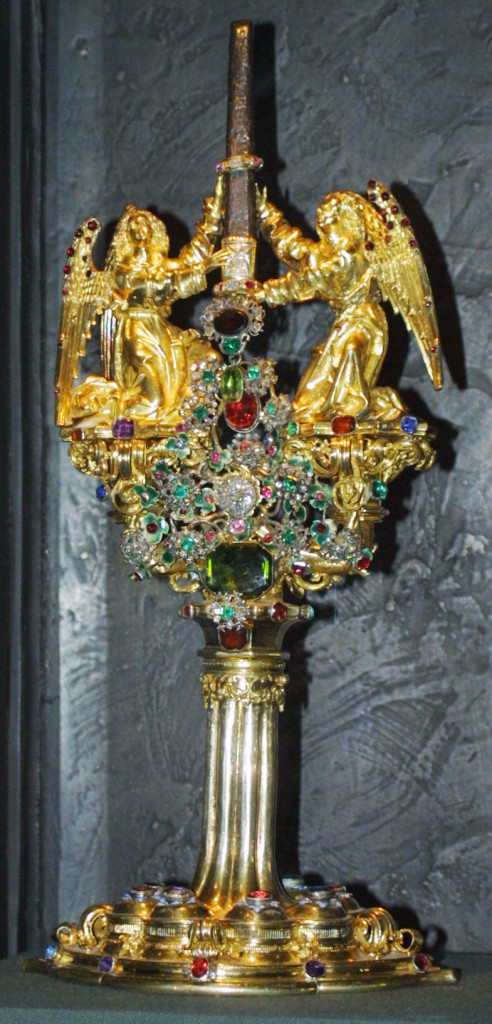 Este dice ser uno de los clavos usados en la crucifixión de Jesús (mira cerca de la parte superior), guardado en la Catedral de Bamberg en Bamberg, Alemania.