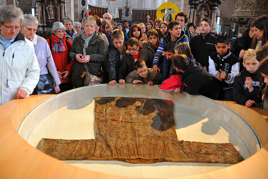 El Sudario de Turín se cree que es la tela de entierro de Jesús. Se conserva en la catedral de San Juan Bautista en Turín, Italia.