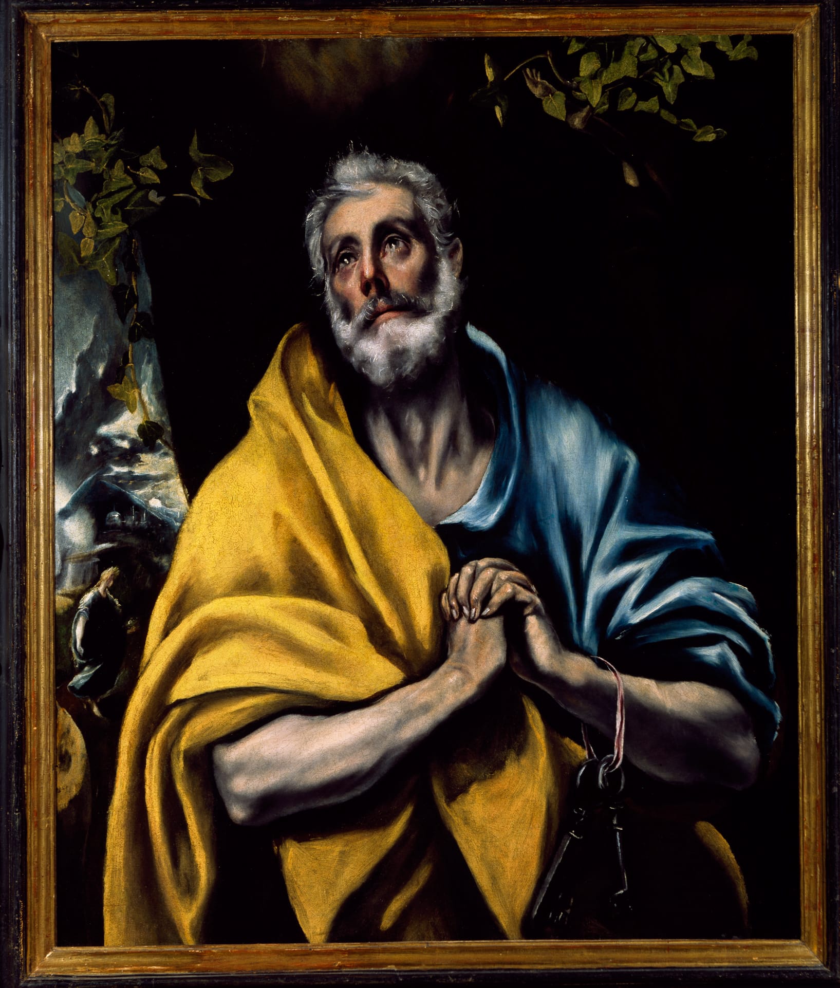 Pedro ha negado a Jesús y llora amargamente. En este retrato, El Greco pinta no a un apóstol, sino a un hombre roto por el arrepentimiento. Sus ojos al cielo no suplican perdón, lo esperan. Esta obra nos habla del poder transformador de la culpa bien asumida y de la confianza en el perdón.