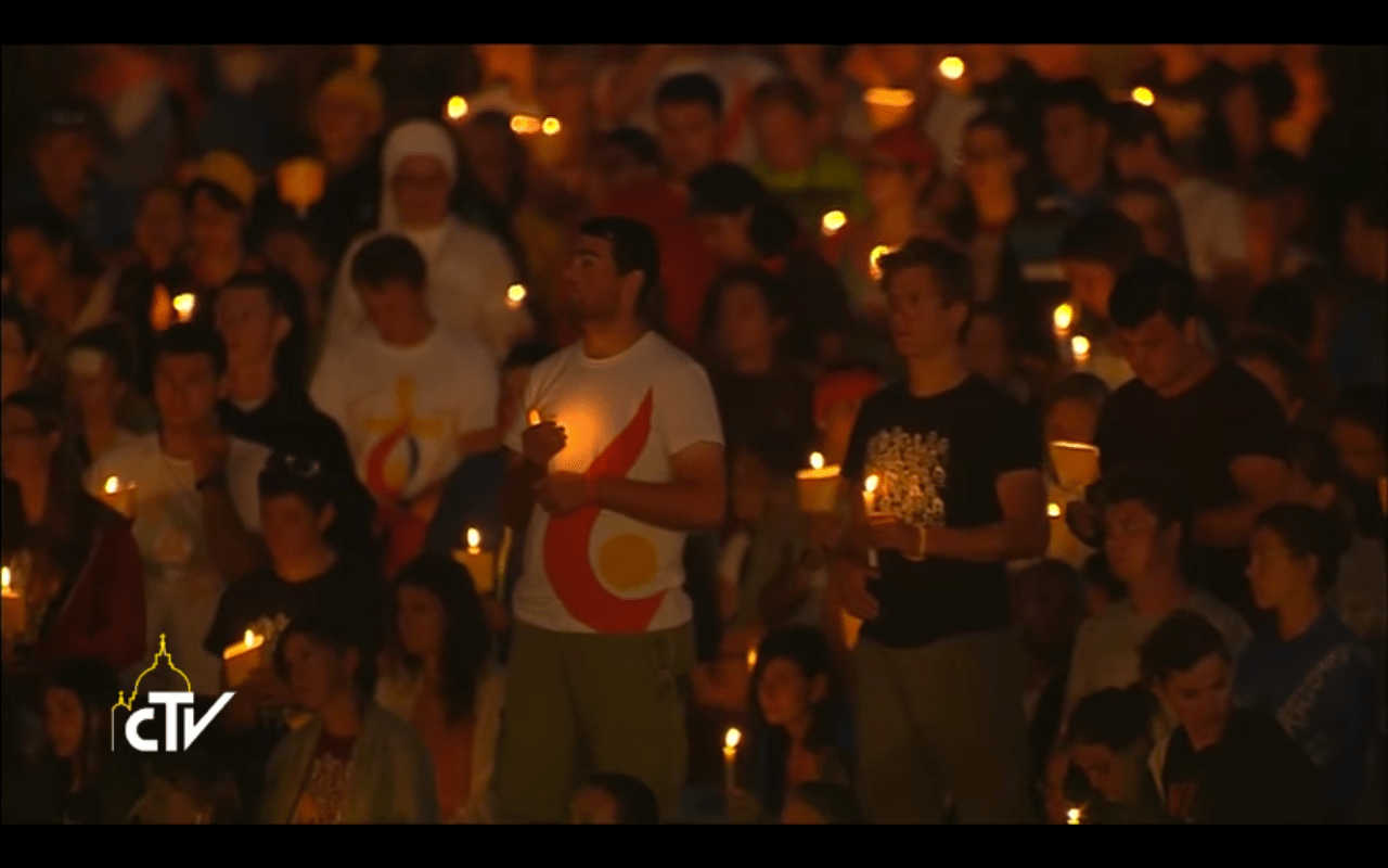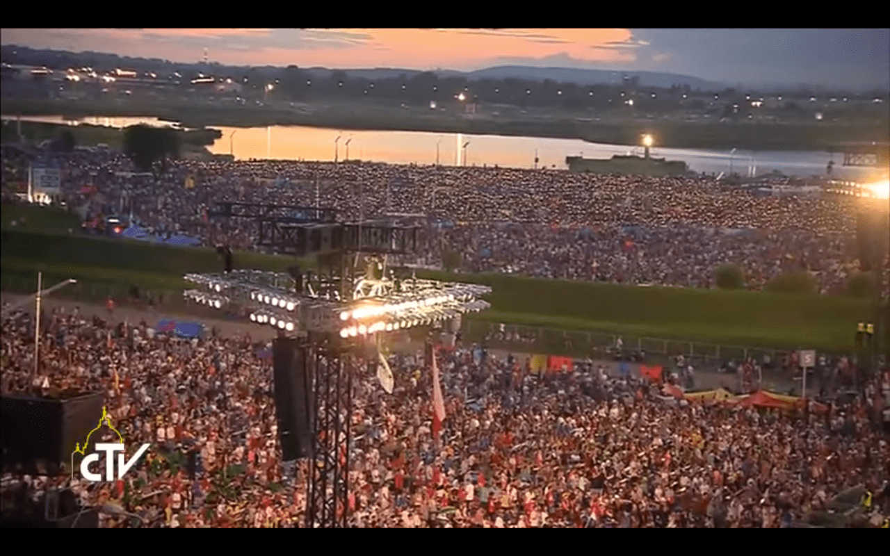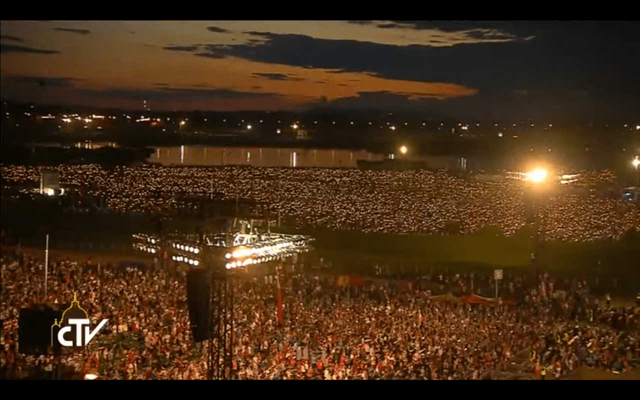 Después de varios días de oración, alabanza, peregrinación, Francisco encabezó a los más de 1 millón de jóvenes presentes en una adoración eucarística y la recitación de la Coronilla. Muchos de ellos sostenían velas en sus manos. ¡La vista era hermosa!