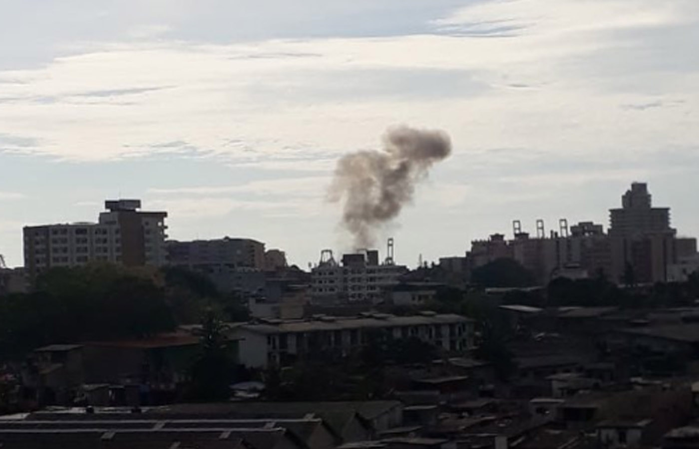 The moment a bomb explodes in Sri Lanka's capital Colombo, as the police attempt to defuse it