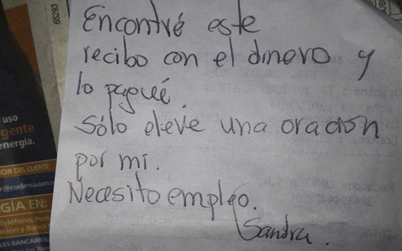 Esta es la foto viral del momento. Paula Martinez guardó en un sobre el dinero para pagar el recibo de luz, pero lo perdió en un descuido. Ella nunca imaginó la gran sorpresa que se llevaría cuando volvió a casa. Paula Martinez cuenta así la historia de esta foto: “Hoy...