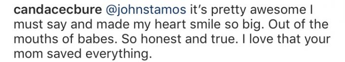 Candace Cameron-Bure (quien actúa de DJ) dijo: “Es bastante impresionante, debo decir, e hizo que mi corazón se alegrara mucho. Esto sale de los labios de los bebés. Tan honesto y verdadero. Me encanta que tu madre lo haya guardado”.