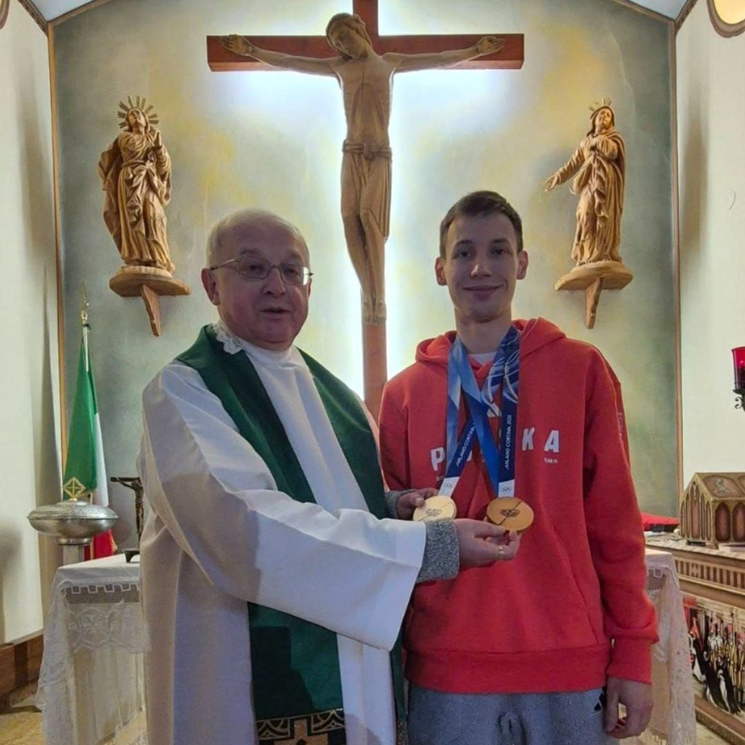 “Fue una Misa muy conmovedora. Kacper fue el lector y quiso agradecer a Dios por las medallas”. — Padre Edward Pleń