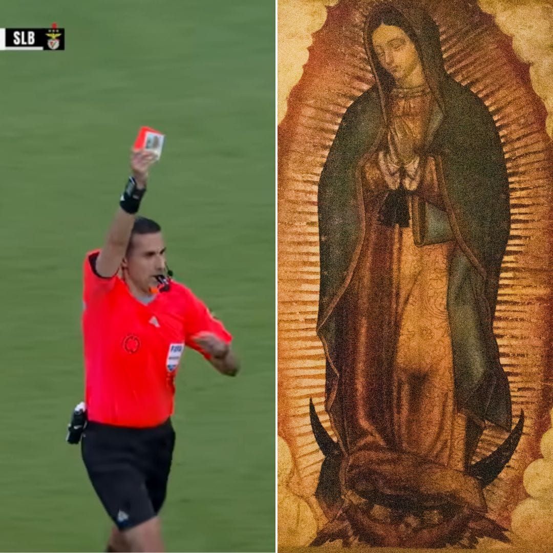 Árbitro se confunde y expulsa a jugador con tarjeta roja y estampita de la Virgen de Guadalupe