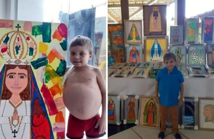 [Viral] Niño pinta cuadros de santos para pagar su tratamiento y conmueve las redes