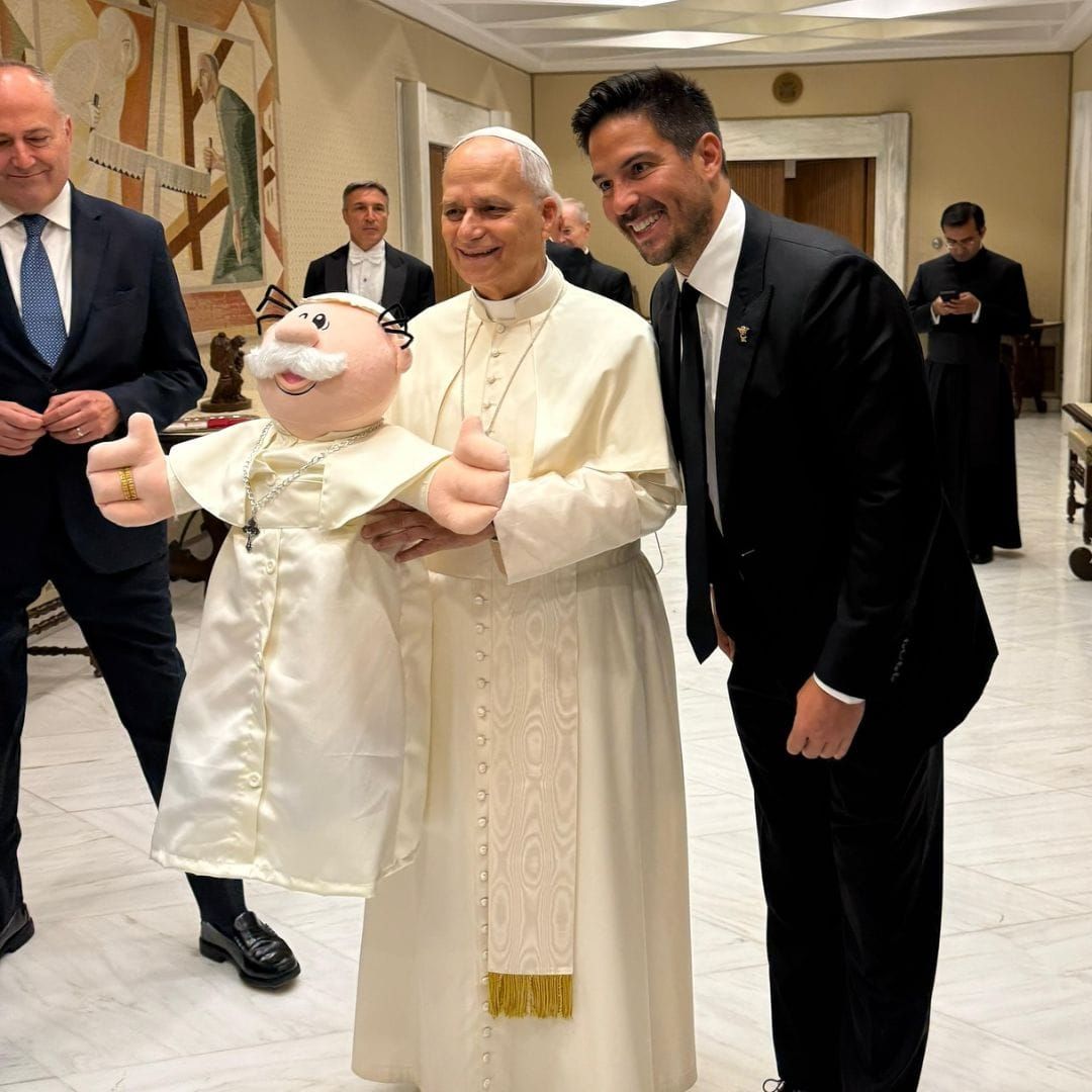 El gesto del presidente de Farmacias Similares sorprendió al Papa León XIV, al regalarle un Dr. Simi vestido de Pontífice.