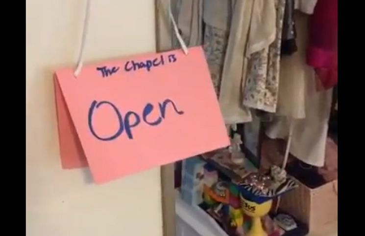Niña crea “capilla” en su clóset e invita a sus hermanos a rezar