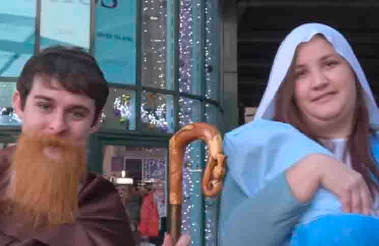 Pareja católica “toma” centro comercial que desmanteló nacimiento