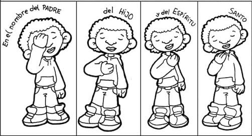 Consiste en dibujar una cruz sobre nuestro cuerpo mientras rezamos lo siguiente: “En el nombre del Padre (tocar la frente), del Hijo (tocar el pecho) y del Espíritu (tocar el hombro izquierdo) Santo (tocar el hombro derecho)“.