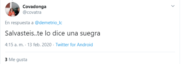 La usuaria contestó: “Salvasteis..te lo dice una suegra”