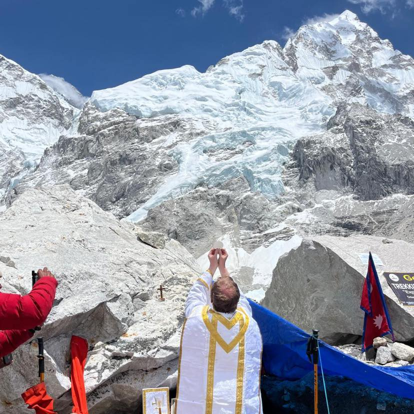 Aunque Sir Edmund Hillary, uno de los primeros en escalar el Monte Everest, enterró un crucifijo bendecido por el Papa Pío XII en la cima de la montaña en 1953, la Eucaristía celebrada por el padre Doohan es la Misa más alta registrada en el actual campamento base del Monte Everest.