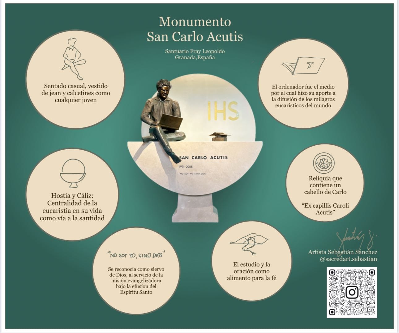Inspirado en la vida del “ciberapóstol de la Eucaristía”, el artista colombiano Sebastián Sánchez creó un monumento en honor a Carlo Acutis. La obra muestra al beato como un joven cercano y sencillo, recordando a todos que la santidad se construye en lo cotidiano.