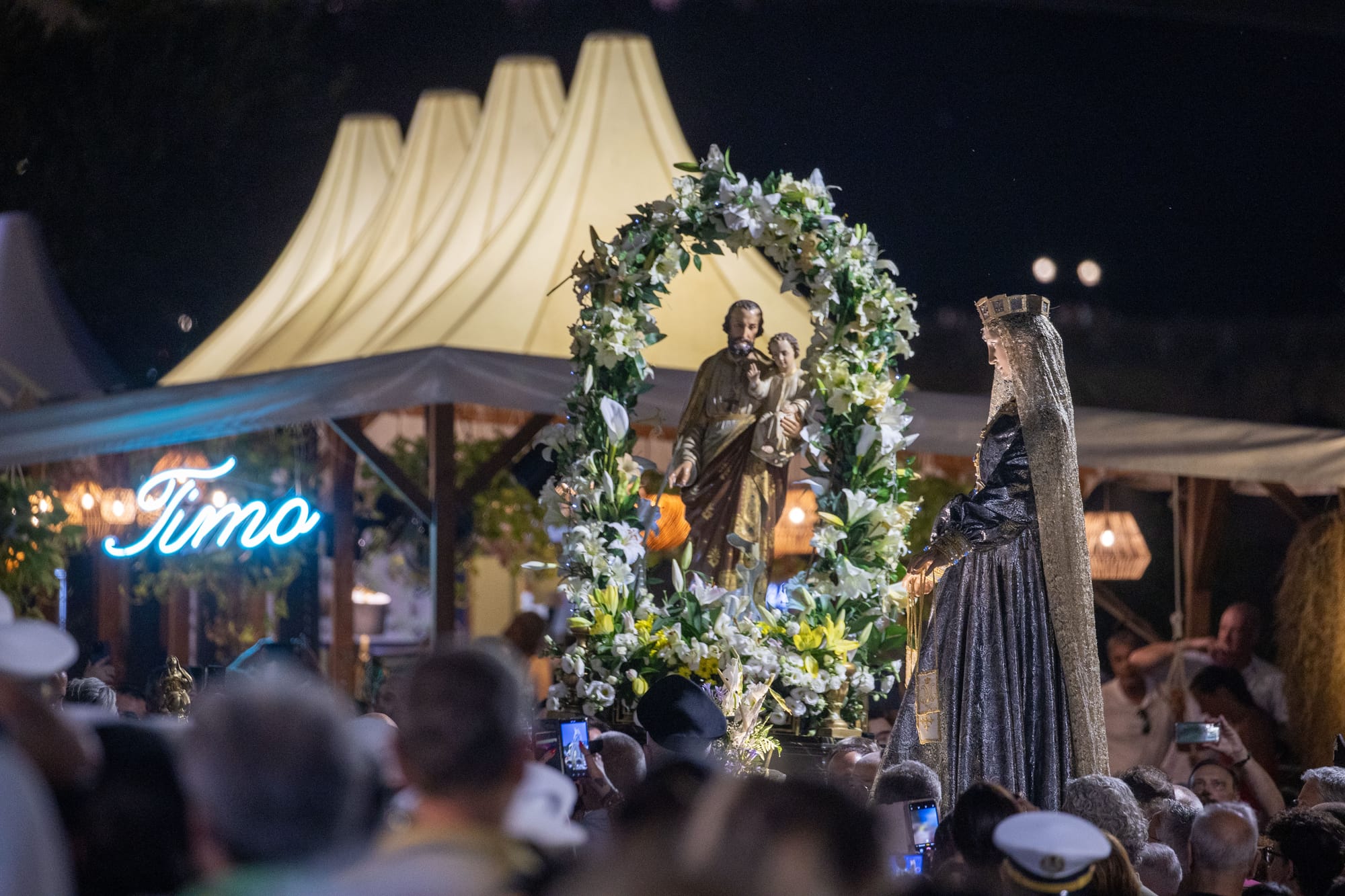 La estatua de María luego es recibida por una estatua de San José cuando desembarca del bote.