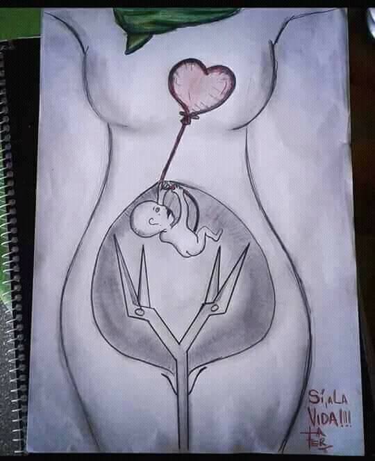 Un sencillo dibujo sobre la realidad del aborto se ha vuelto viral en las últimas semanas. La imagen muestra a un pequeño niño por nacer que sujeta una cuerda unida al corazón de su madre mientras trata de salvarse de unas pinzas en el vientre de la mujer (puedes ver el dibujo aquí debajo). En la misma imagen se puede apreciar que la mujer lleva en su cuello un pañuelo verde, el cual es usado en Argentina por mujeres que piden que el gobierno les brine un aborto “seguro, legal y gratuito”.