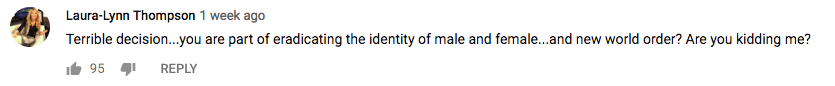 “Terrible decisión… estas de acuerdo con erradicar la identidad del hombre y la mujer…¿y nuevo orden? ¿estás bromeando?”