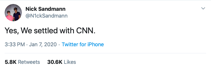 “Sí, llegamos a un acuerdo con CNN”, escribió.