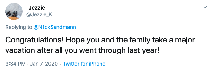 Otro usuario dijo: “¡Felicitaciones! ¡Espero que usted y su familia se tomen unas vacaciones importantes después de todo lo que pasaron el año pasado!