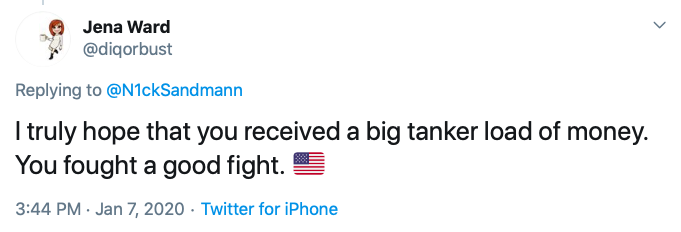 Este usuario agregó : “Realmente espero que hayas recibido una gran cantidad de dinero en el camión cisterna. Peleaste una buena pelea.