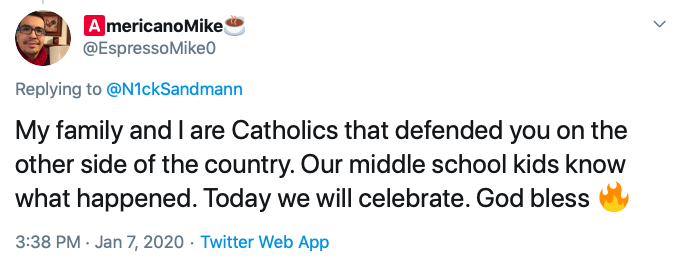 La familia Sandmann presentó una demanda por difamación contra el medio de comunicación el año pasado después de que apareció un video que mostraba a Sandmann en la Marcha por la Vida de enero de 2019 antes de tocar al nativo americano Nathan Phillips. El medio de comunicación pintó a Sandmann como un agresor y racista.
