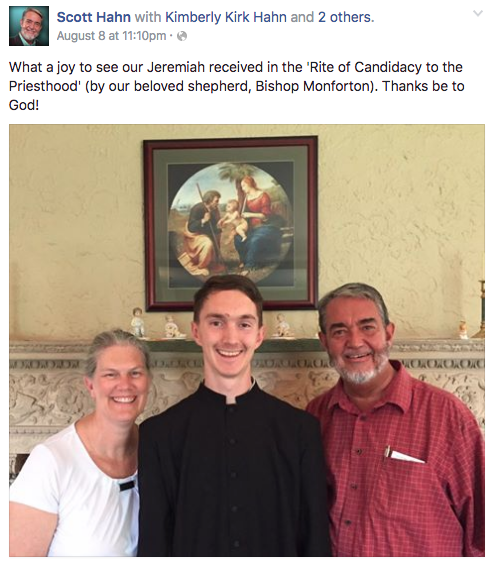 Jeremías, el hijo del ex- pastor protestante Scott Hahn, ha recibido el “Rito de candidatura para el sacerdocio”. Así lo anunció el propio Scott Hahn en su cuenta de Facebook.