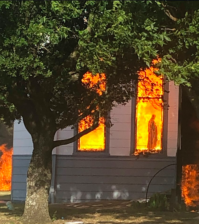 La leyenda de la foto dice: “De todas las imágenes que hemos visto del incendio en la Iglesia de la Visitación en Westfalia, esta de Nathan Wilde, es la más impactante y desgarradora ¡Nuestra Señora de la Visitación, ruega por nosotros!