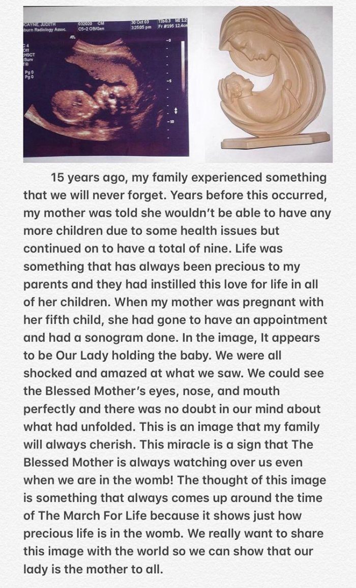 Esta es una imagen que mi familia siempre apreciará ¡este milagro es una señal de que la Santísima Madre siempre nos cuida, incluso cuando estamos en el vientre!