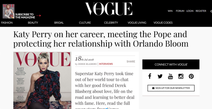 La famosa cantante Katy Perry ha sorprendido a miles de fans al declarar a la revista Vogue Australia que ha regresado a Dios inspirada por su reciente encuentro con el Papa Francisco.