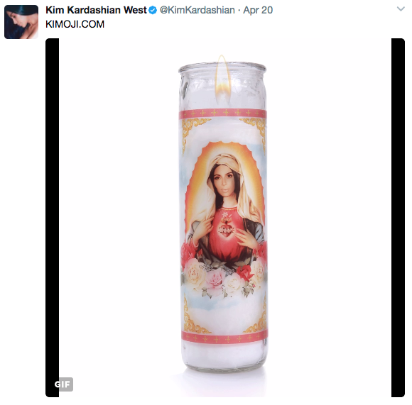 La modelo y estrella estadounidense Kim Kardashian recientemente ha lanzado una serie de productos que sus fans pueden comprar en su página web, entre los cuales se encuentra una veladora de la Santísima Virgen María pero con el rostro de la estrella pop. Una completa blasfemia.