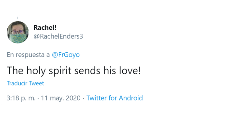 Otra usuaria llamada Rachel expresó: “¡El espíritu santo envía su amor!“.