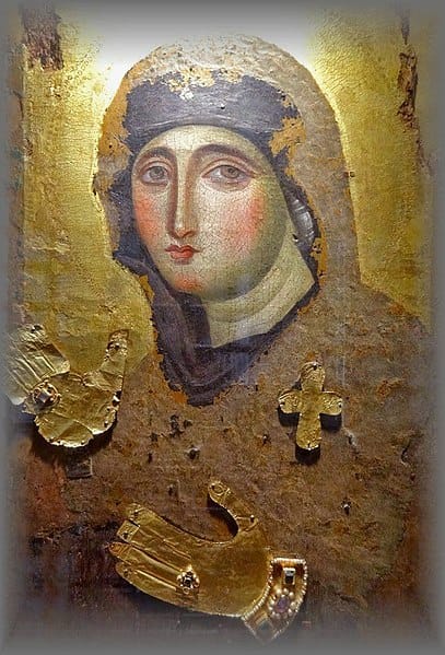 Esta imagen se encuentra en el Monasterio de Santa Catalina cerca del monte Sinaí y data del siglo VI. Al rededor de María y Jesús están San Teodoro de Amasea, San Jorge y dos ángeles. También se puede apreciar una mano en la parte superior de la imagen (¿Será Dios Padre?)
