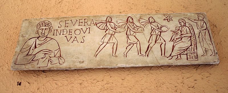 Esta se encuentra en un sarcófago en los Museos Vaticanos. Muestra la escena de los magos adorando al Niño Dios quien es cuidado por su madre. La imagen data del siglo III.