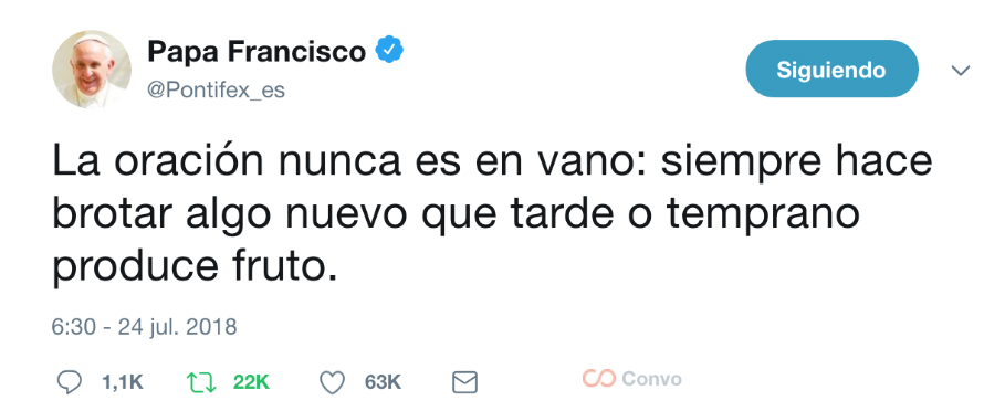 Este simple tuit del Papa publicado en su cuenta oficial @Pontifex_es (también disponible en otros idiomas) se ha viralizado hoy: