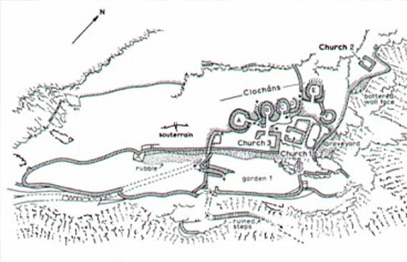 Hoy se encuentra en ruinas, pero estos dibujos hecho por expertos muestran cómo el santuario tenía una red de oratorios y caminos que rodeaban la isla: