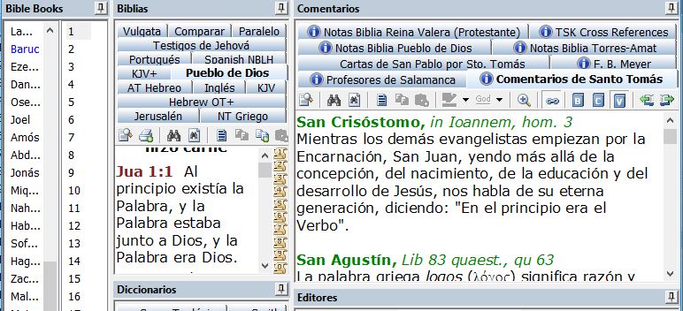 En primer lugar la enorme cantidad de distintas ediciones de la Biblias que puedes encontrar en ella. Aunque este programa fue desarrollado originalmete por protestantes, actualmente se le pueden instalar extenciones que te permitirán encontrar en ella Biblias como la Biblia de Jerusalén, Torres Amat, Vulgata latina, Latinoamericana, etc. Genial ¿verdad?