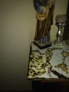 Como muchas otras noches, el sacerdote de Iglesia puso una pequeña vela en un altar de la casa parroquial con una imagen del Jesús de la Misericordia, San José y María auxiliadora.