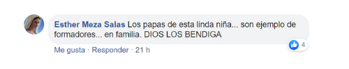 Otra igualmente emocionada expresó: “Los papás de esta linda niña… son ejemplo de formadores… en familia. DIOS LOS BENDIGA”.