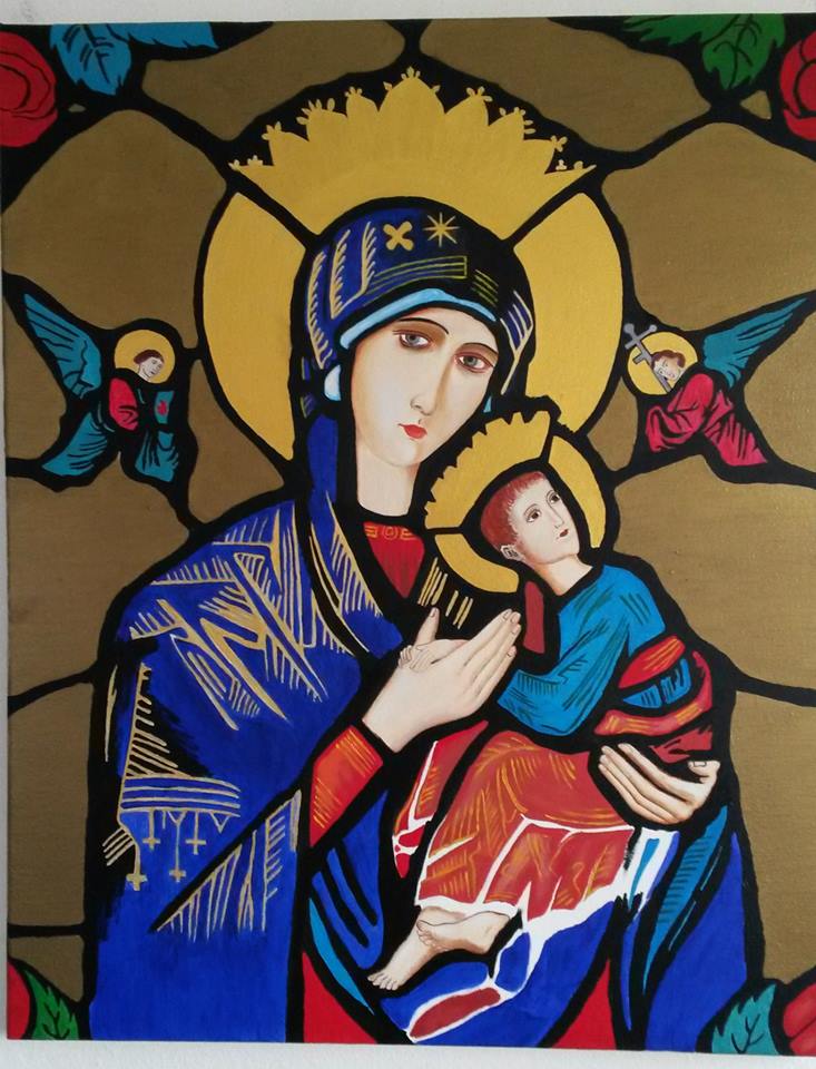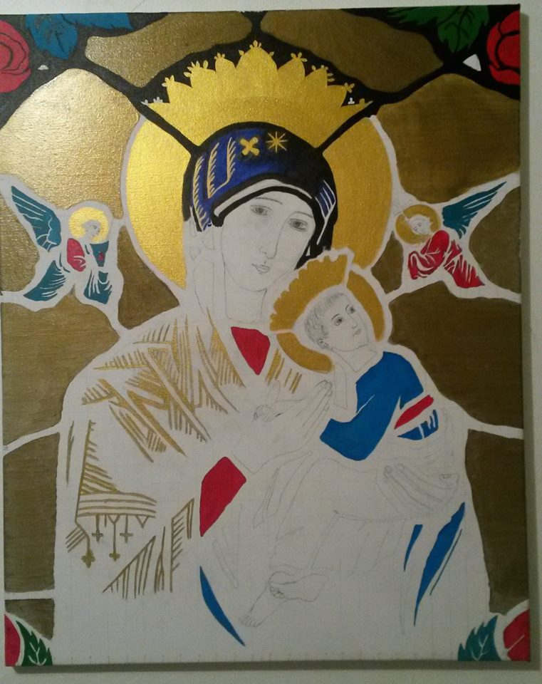 Jonathan F. Martinez es un artista costarricense que hace pinturas al óleo. Él tuvo la genial idea de compartir fotos del paso a paso de uno de sus trabajos: una hermosa pintura de la Santísima Virgen con el Niño Jesús entre sus brazos.