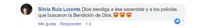 Otra usuaria emocionada les dedicó a los tres protagonistas una bendición: “Dios bendiga a ese sacerdote y a los policías que buscaron la bendición de Dios”.