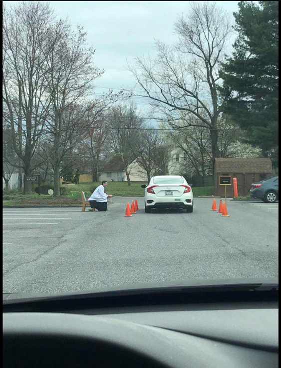 El padre Scott Holmer, de la Iglesia Católica San Eduardo el Confesor en Bowie, Maryland, está ofreciendo confesiones para conductores después de que la Arquidiócesis de Washington suspendiera todas las Misas públicas, a partir del 14 de marzo.
