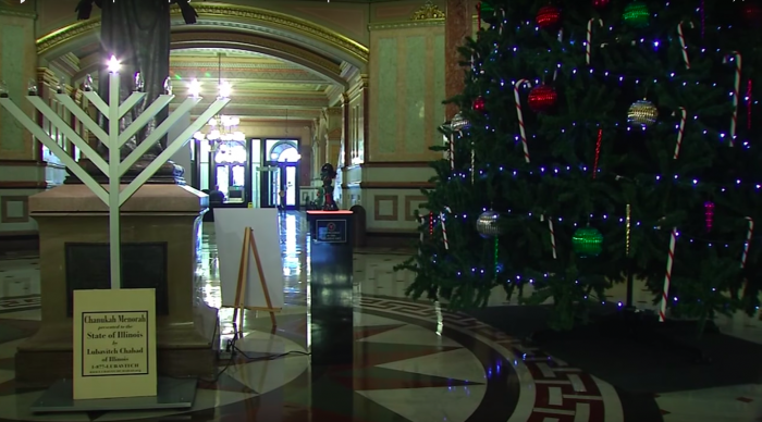 La municipalidad de Illinois mostró el árbol de Navidad, un Nacimiento, y una menorá de Hanukkah debido a las festividades.