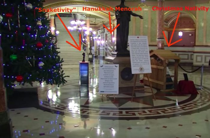 Sin embargo, por “respeto” a todas las religiones, la municipalidad aceptó una estatuilla peculiar entre los símbolos tradicionales navideños: un “Snaketivity”, proporcionado por el Templo Satánico de Chicago.