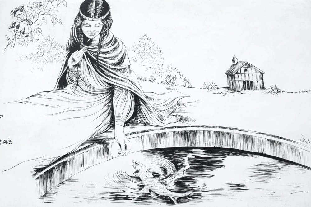 Poco después, su oración fue escuchada: ¡una trucha emergió del arroyo con el anillo en la boca!