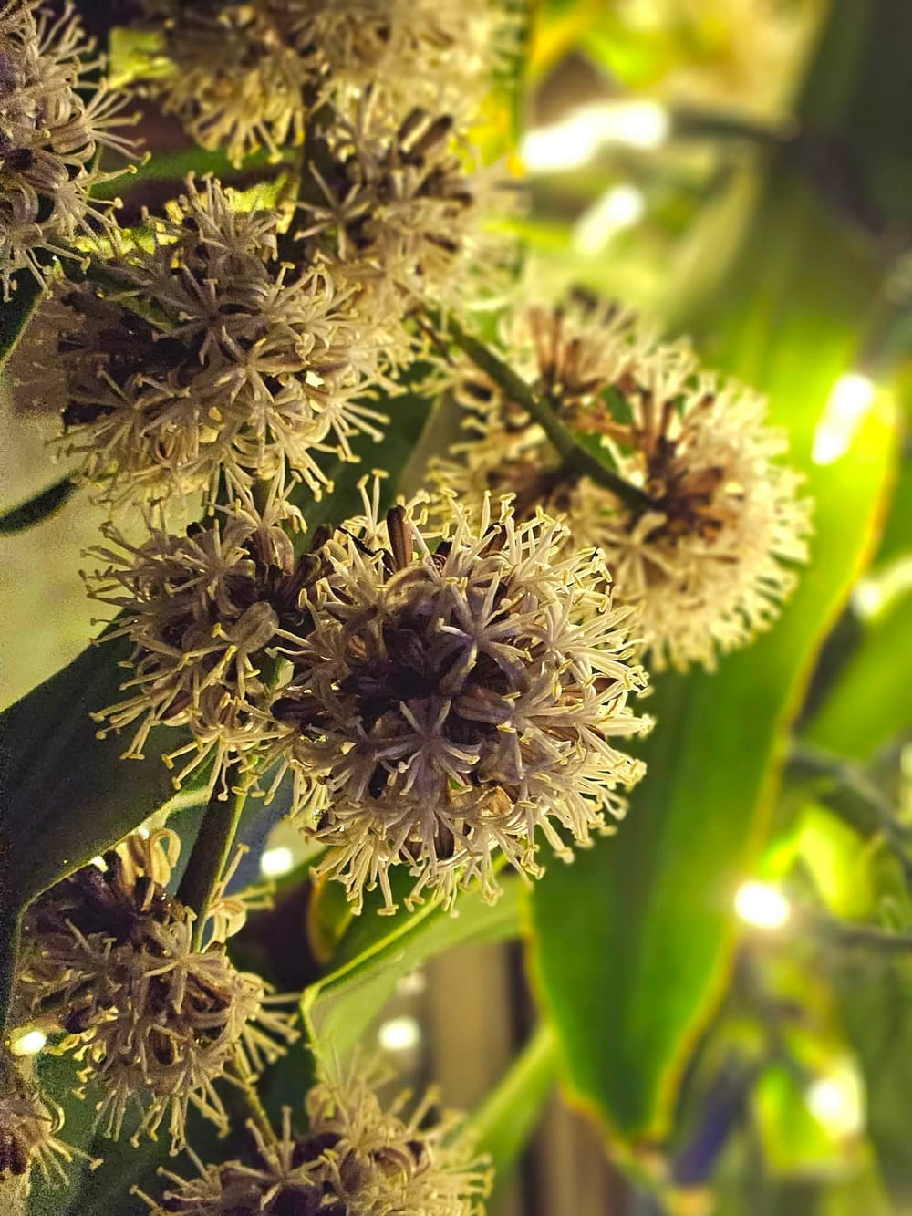 Al salir por la puerta, noté que la planta de Dracaena que tenemos fuera de casa, una planta que mi papá compró y plantó hace más de una década para honrar y recordar a Ewan, estaba a punto de florecer. En los 12 años aproximadamente que la tenemos, solo había florecido una vez. La llamamos “el árbol de Ewan”.