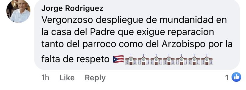 Otro usuario comentó: “Vergonzoso despliegue de mundanidad en la casa del Padre que exige reparación tanto del párroco como del Arzobispo por la falta de respeto.”