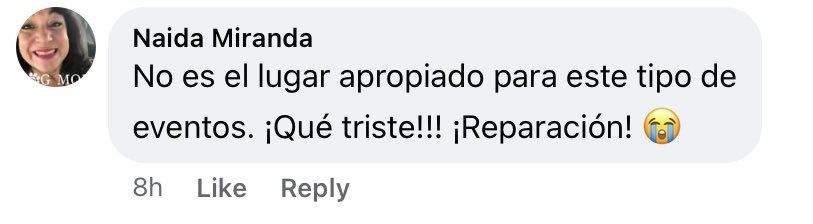 Una usuaria expresó: “No es el lugar apropiado para este tipo de eventos. ¡Qué triste!!! ¡Reparación!”