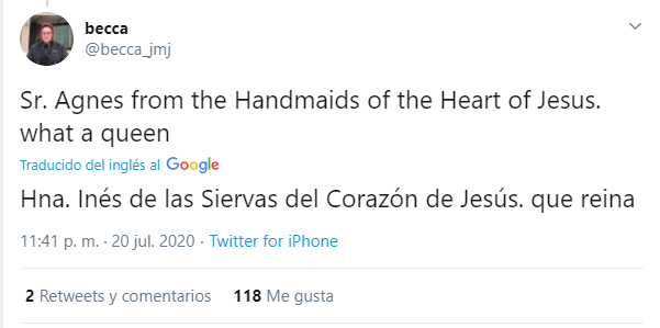 La misma persona que comparte el video -y reconoce a la hermana- dice: “Hna Inés de las Siervas del Corazón de Jesús. Qué reina”.
