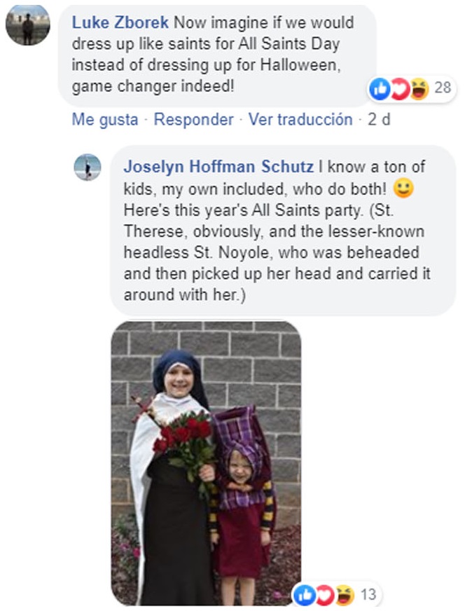 “¡Ahora!, ¿se imaginan si las personas se vistieran de santos para el Día de todos los Santos en vez de hacerlo en Halloween? ¡Las cosas cambiarían!”.
