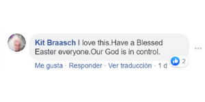 “Me encanta esto. Tengan una bendita Pascua para todos, nuestro Dios tiene el control”, comenta otra persona conmovida.